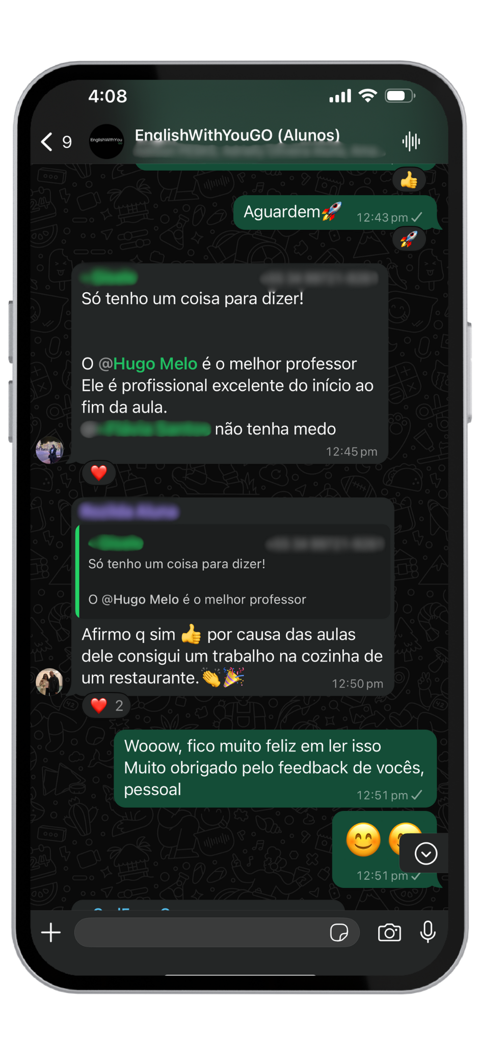 Recomendo muito as aulas com o teacher Hugo, da EnglishWithYouGo! A didática dele é clara e envolvente, o que tem me ajudado bastante a melhorar meu inglês. Os materiais de apoio e feedbacks no final de cada aula fazem toda a diferença. Tenho percebido avanços no listening, speaking, reading e writing. O professor Hugo é atencioso e cria um ambiente leve e descontraído, tornando o aprendizado mais fácil e prazeroso.